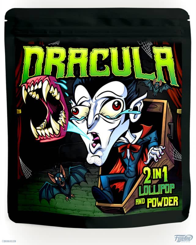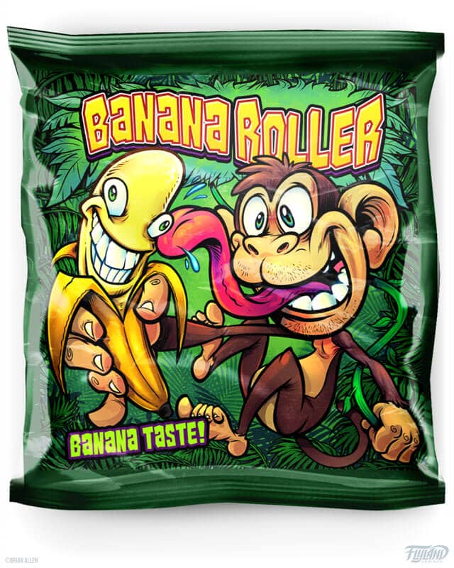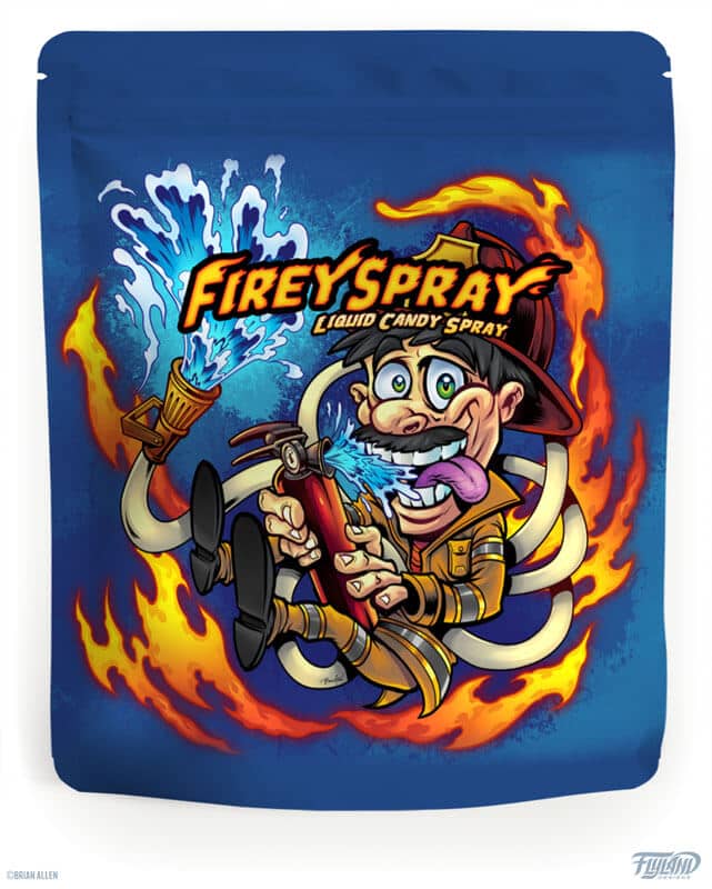 One of my most common projects as a Freelance Illustrator is creating artwork for Packaging for all sorts of products. My artwork has been featured on dozens of Candy packaging labels. I’ve also had the pleasure of designing the packaging for many Toy products. My colorful artwork has even been used on packaging for Supplements and Energy Drinks. Because my artwork is vibrant and bold, it has been used on close to 100 different eJuice Vaping labels over the years. It’s been a lot of fun to come up with ideas and characters to illustrate each flavor. Another industry that my artwork is perfect for: Cannabis Strain labels. I’ve created illustrations for countless CBD and Marijuana brands across the world, as legalization becomes more prevalent.