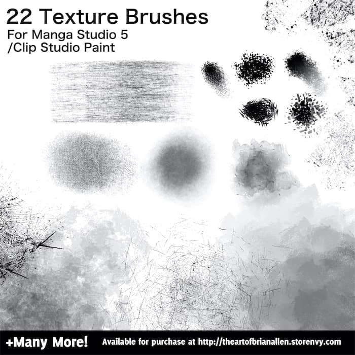 - 22 Texture BrushesThe brushes are useful for all styles of illustration. As a freelance digital illustrator, I use them primarily for Comic Book illustration, t-shirt design, logo design, character and concept illustration, sketching, and painting.