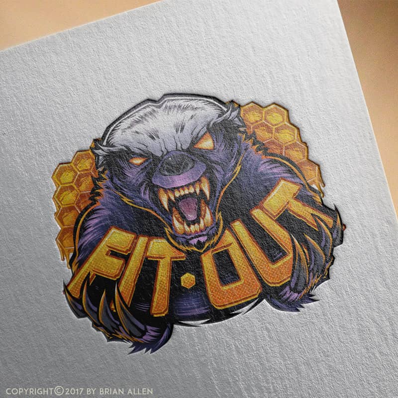Logo design and mascot character design I created for a fitness apparel brand called Fit-Out. The brand’s mascot was the tenacious Honey Badger.