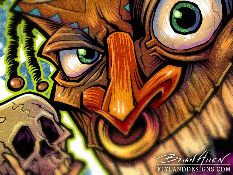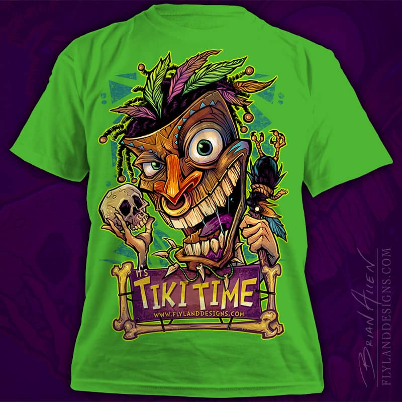 T-Shirt illustration I created for Design By Humans of a Tiki Man holding a skull and a dead crow. I’ve been trying to make more time for fun personal products like this. Purchase the T-Shirt here: https://www.flylanddesigns.com/product-category/apparel/