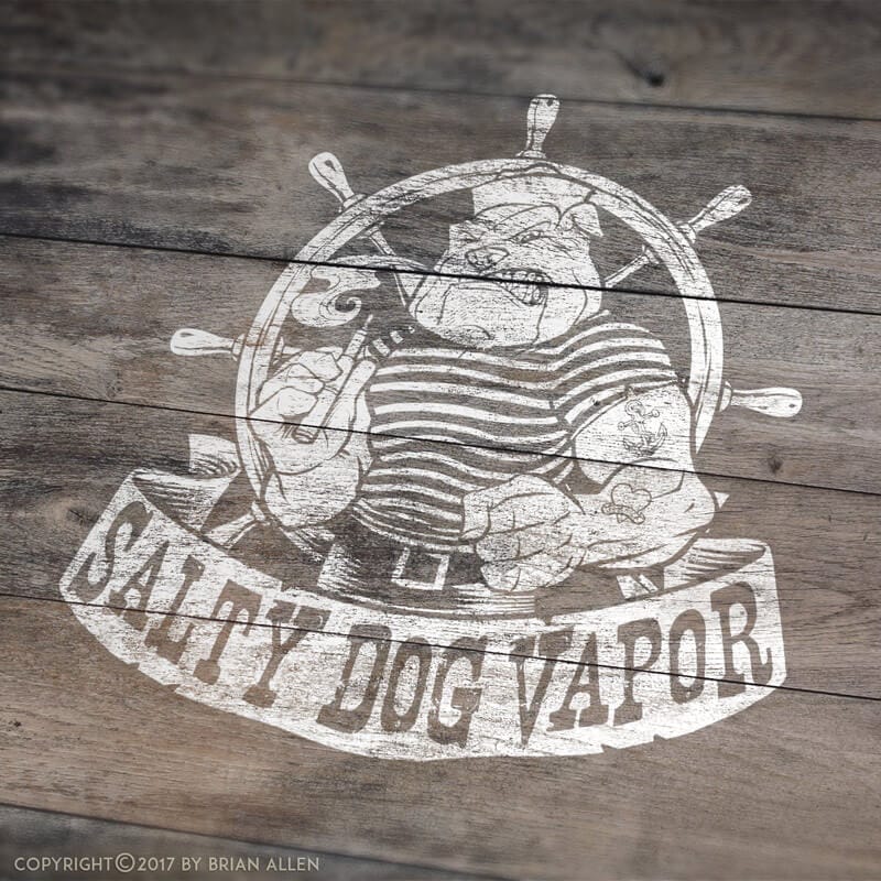 Logo design I created for a vaping shop in Lousiana called Salty Dog Vapor. We decided early on that the mascot should be a tough bulldog sailor. Extremely pleased with how this turned out.