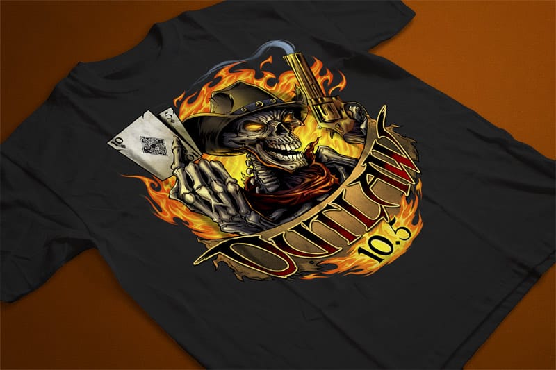 Custom logo design I created for Outlaw 10.5, a racing company in Australia. This was an update of his existing logo that needed a complete re-imaganing. The logo features a skeleton outlaw holding a smoking gun, and a 10 and 5 of diamonds.
