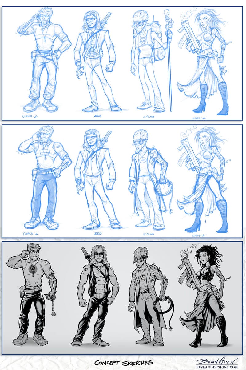 This was a really fun project, because the client had put a lot of thought before hand into the back-story, look, and attitude of the characters. After a few rounds of sketches, we landed on a design that we were all really happy with. The characters will be used on their website and in promotional materials.