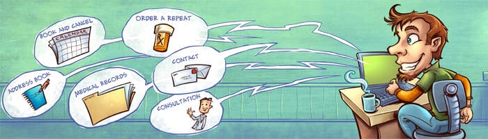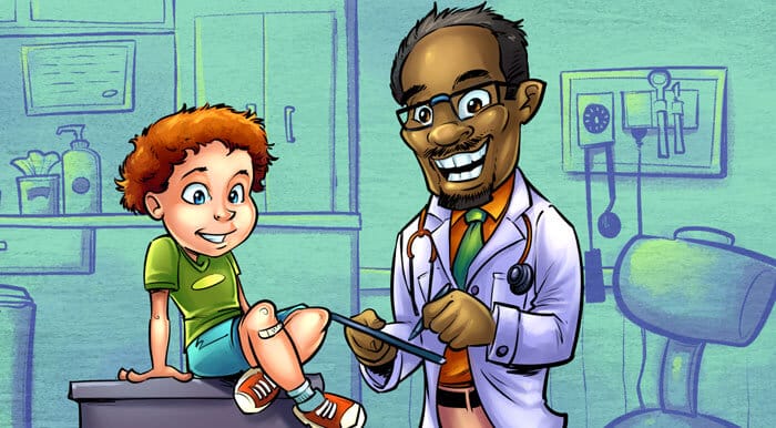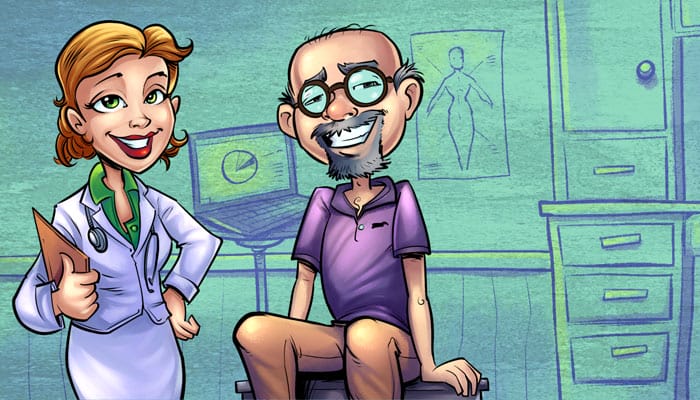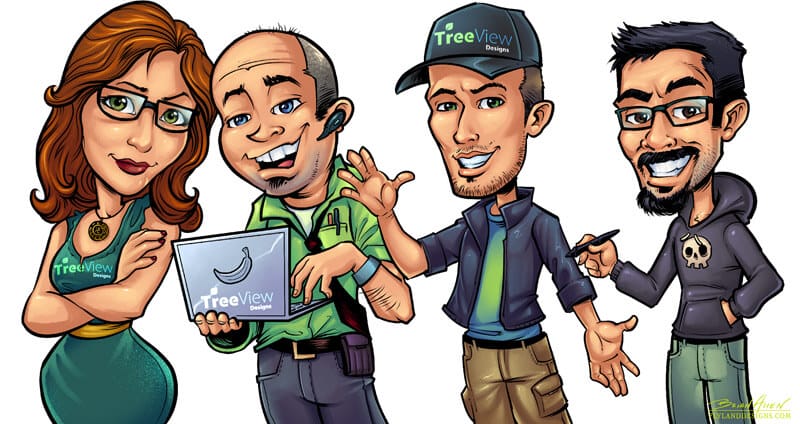 Custom caricature characters I illustrated for Tree View Designs, a web development company that specializes in website templates for Doctors. I was tasked with creating a line of characters and simply colored backgrounds that their clients can use to decorate their websites. I was flattered that they invited me to join their team in cartoon form!